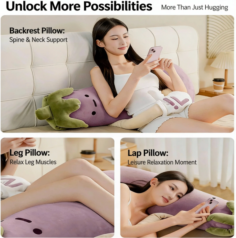 Our body pillow is crafted with high-quality, breathable materials designed for comfort and durability. The filling offers the perfect balance of softness and support, while the cover is gentle on skin and easy to care for.
